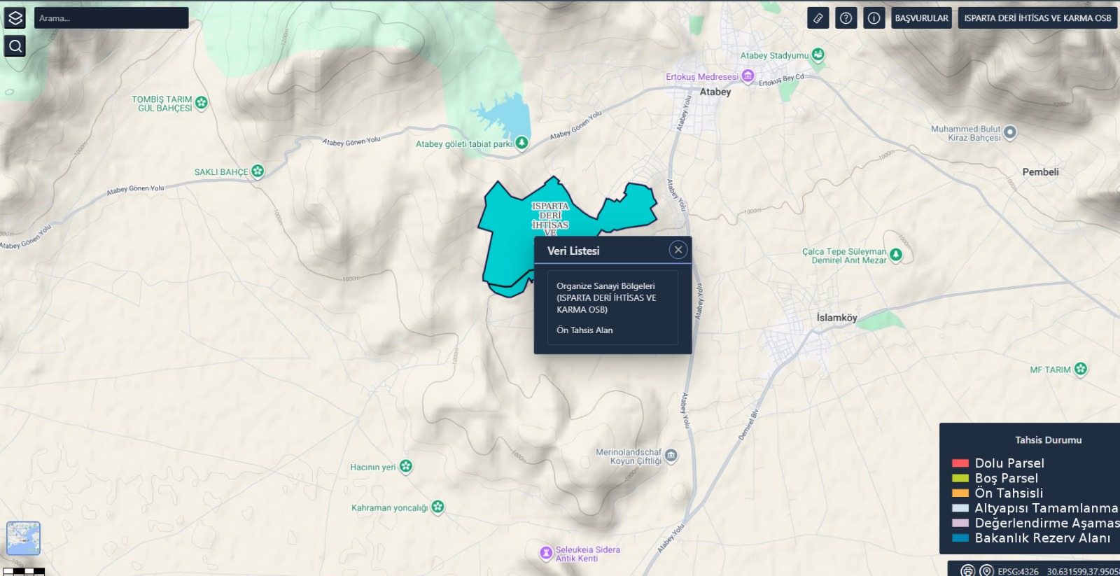 Isparta sanayisi adına son derece önemli bir gelişme yaşanıyor. Atabey ilçesi sınırları içerisinde yer alan ve 4. kademe bölgesinde bulunan Isparta Deri İhtisas ve Karma Organize Sanayi Bölgesi (OSB) için kritik bir adım atılarak, 1 milyon 500 bin metrekarelik alan Sanayi ve Teknoloji Bakanlığı tarafından “bakanlık rezerve alanı” olarak sisteme dahil edildi.