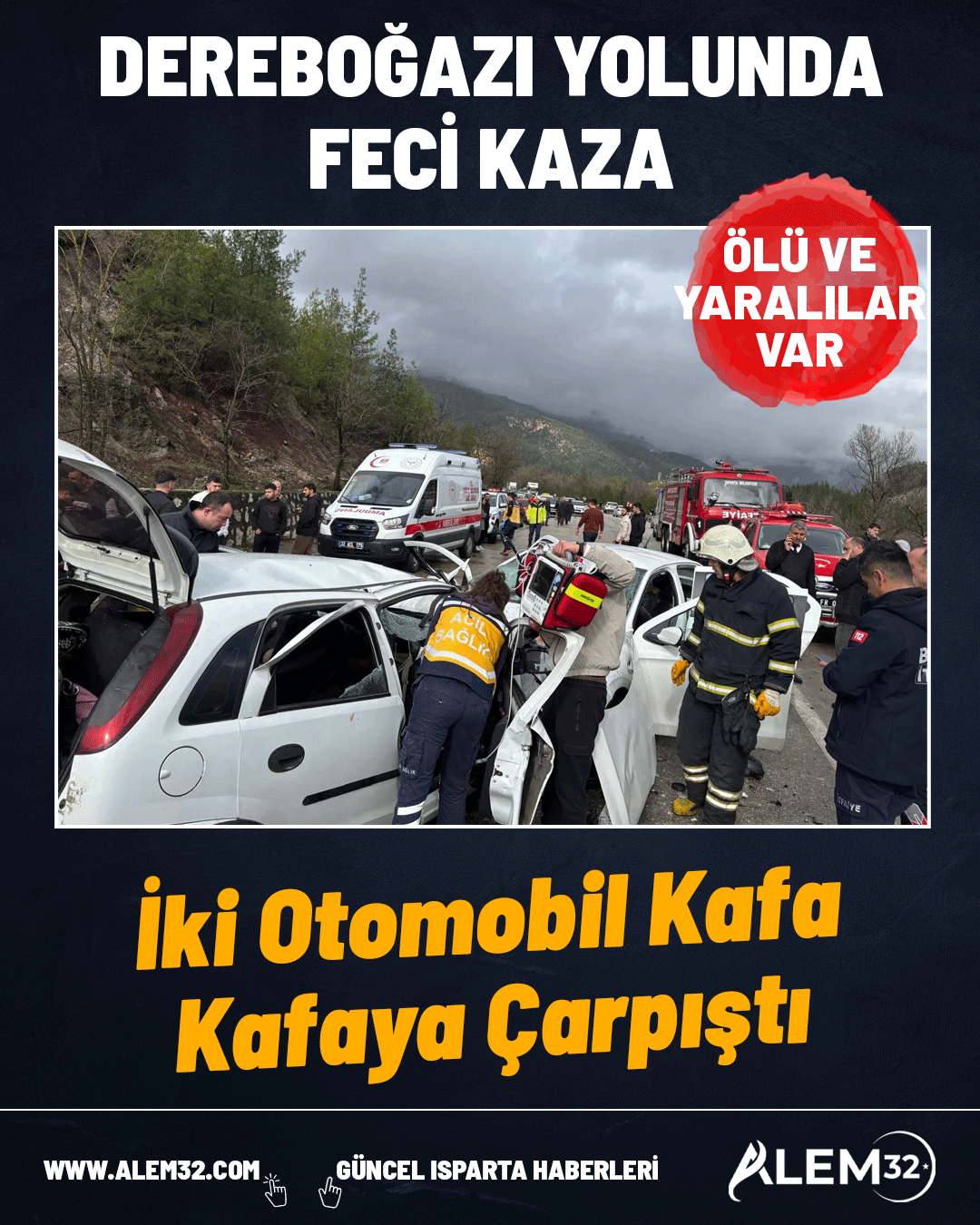 Korkunç kaza, saat 11.00 sıralarında Antalya-Isparta kara yolunda meydana geldi. Edinilen bilgilere göre, iki otomobil kafa kafaya çarpıştı.