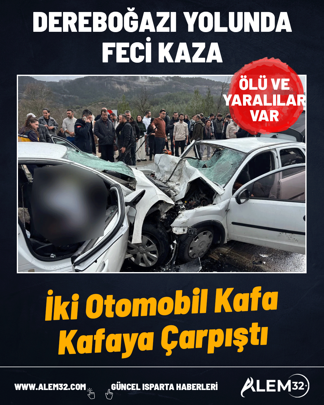 Türkiye kazalarla dolu bir pazar gününe uyandı. Antalya'da yolcu otobüsünün devrildiği haberine şimdi de korkunç bir kaza haberi eklendi. Antalya-Isparta kara yolunun Burdur mevkiinde korkunç bir kaza meydana geldi. Seyir halindeki iki aracın kafa kafaya çarpıştığı kazada ilk belirlemelere göre 6 kişi hayatını kaybederken 6 kişi ise yaralandı.