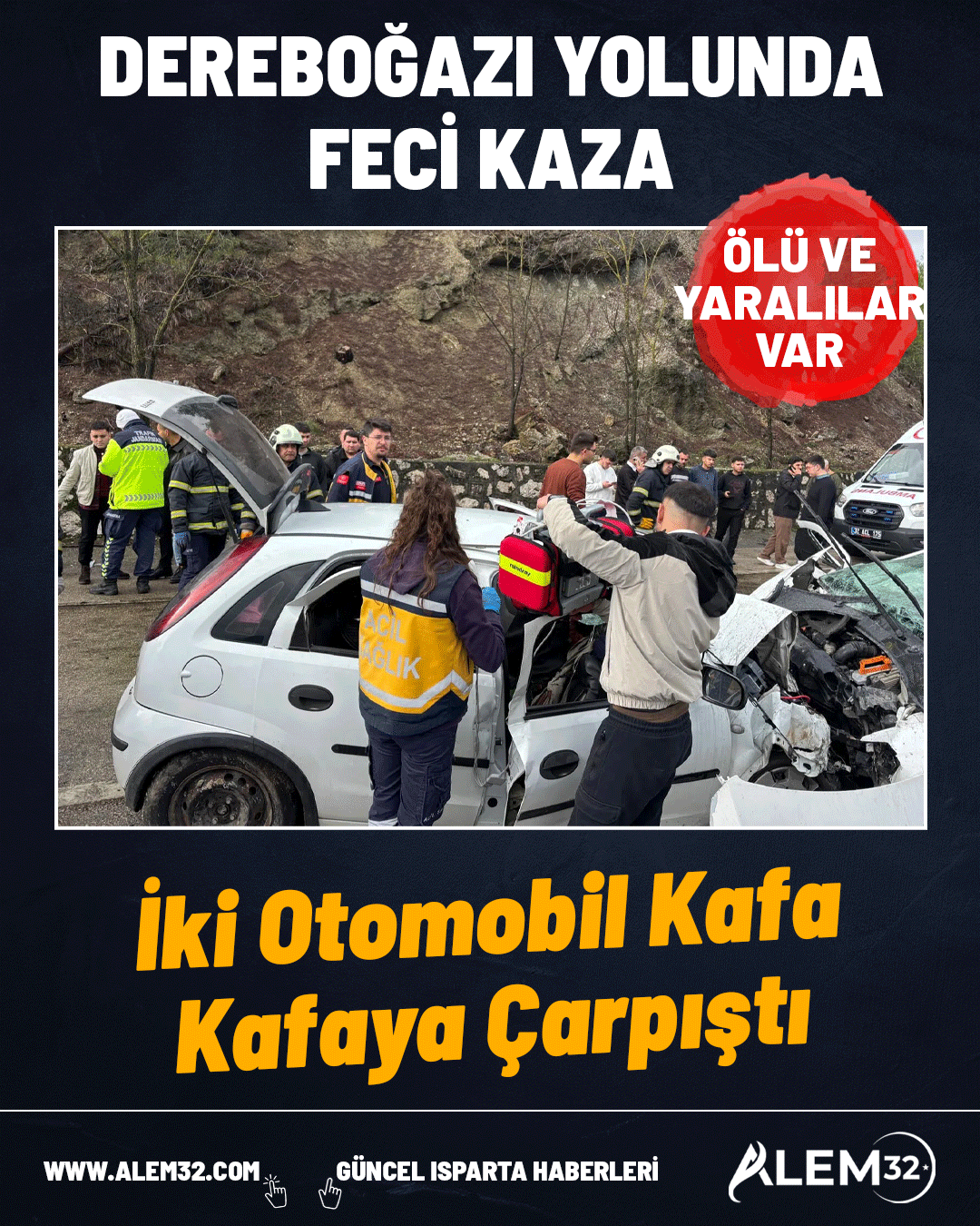 DEREBOĞAZI YOLUNDA FECİ KAZA: İKİ OTOMOBİL KAFA KAFAYA ÇARPIŞTI