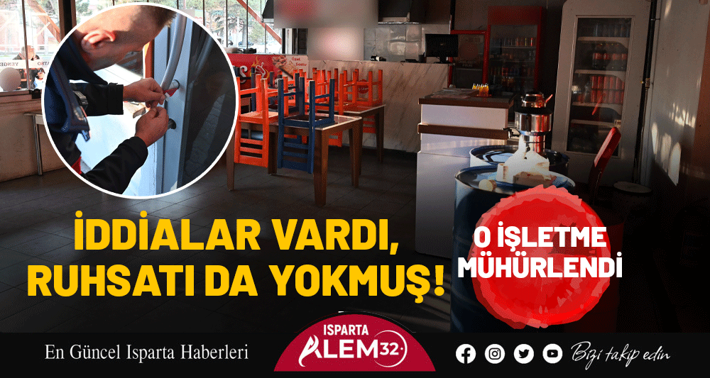 Isparta Belediyesi Zabıta Müdürlüğü ekipleri, yerel medyada yer alan ‘dönercide pişmiş tavuk döner üzerine çiğ tavuk eti takıldığı’ ve ‘restoran içerisinde haşerelerin görüldüğü’ iddialarını ihbar kabul ederek, işletmeyi denetledi. Yapılan denetimde ruhsatsız hizmet verdiği belirlenen işletme mühürlendi.