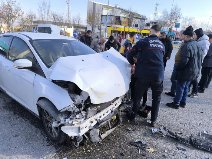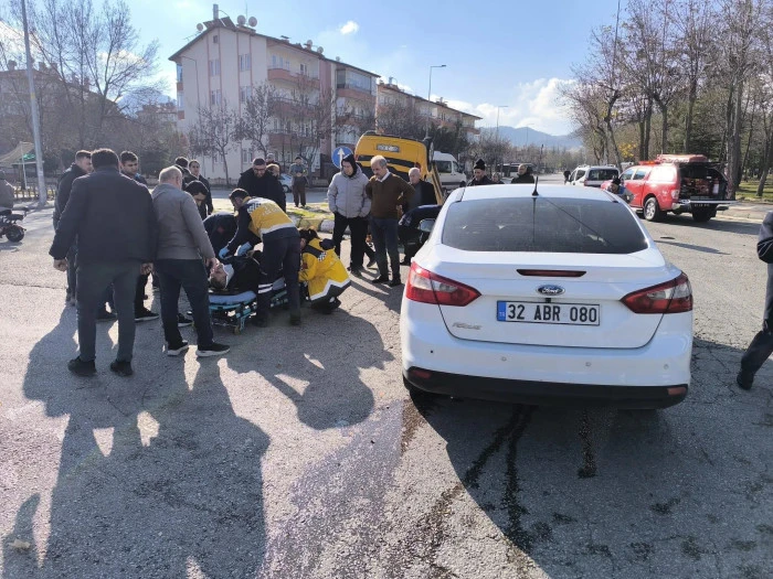 Isparta'da otomobil ile hafif ticari aracın çarpıştığı kazada ortalık savaş alanına döndü. Ticari taksi çarpışmanın etkisiyle ters dönerken, 1 kişi de yaralandı.