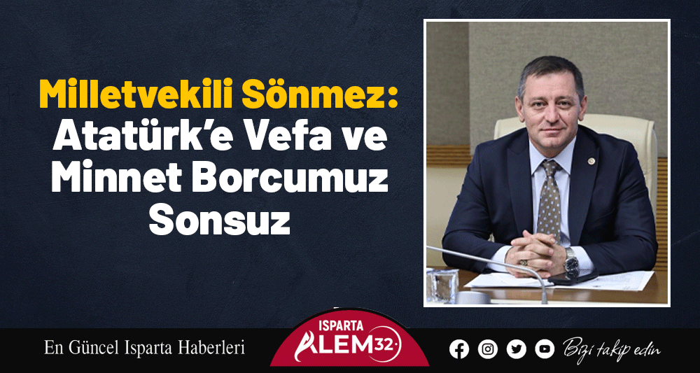 Cumhuriyetimizin Kurucu Önderi Gazi Mustafa Kemal Atatürk’ün ebediyete irtihalinin 87. yıl dönümü dolayısıyla bir mesaj yayımlayan Isparta Milletvekili Hasan Basri Sönmez, Atatürk’ü saygı, rahmet ve minnetle andığını ifade etti.